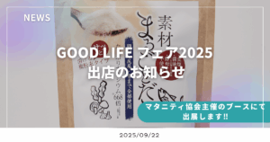 このたび GOOD LIFE フェア2025 にて、マタニティフード協会主催のブースに「素材まるごとだし」を出店いたします!