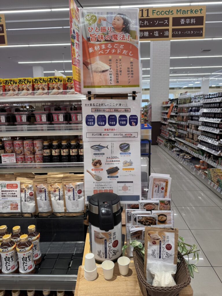 「素材まるごとだし」の試飲販売を行っております。