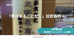 本日は、大野屋商店 桜木町コレットマーレ店 にて「素材まるごとだし」の試飲会を開催しています✨ 添加物や塩を一切使わず、魚をまるごと粉末にした、栄養たっぷりの無添加おだし🥣 ご試飲いただいたお客様からは、「やさしい味で美 […]