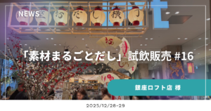 本日から2日間(2025/12/28~29)、銀座ロフト1階 特設会場「銀座おだし横丁」 にて、「素材まるごとだし」の試飲販売を行っています。 日本各地のこだわりのお出汁が一堂に集まる「銀座おだし横丁」は、出汁の魅力や奥 […]